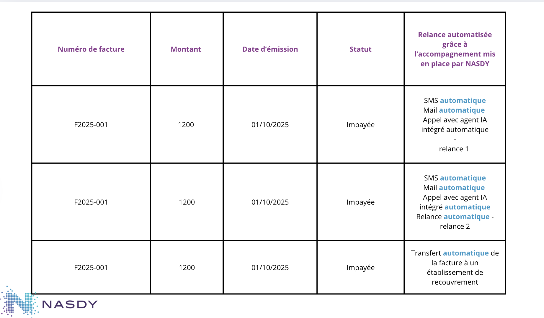- Les relances sont automatiques, structurées et respectueuses, donc les clients paient plus vite.